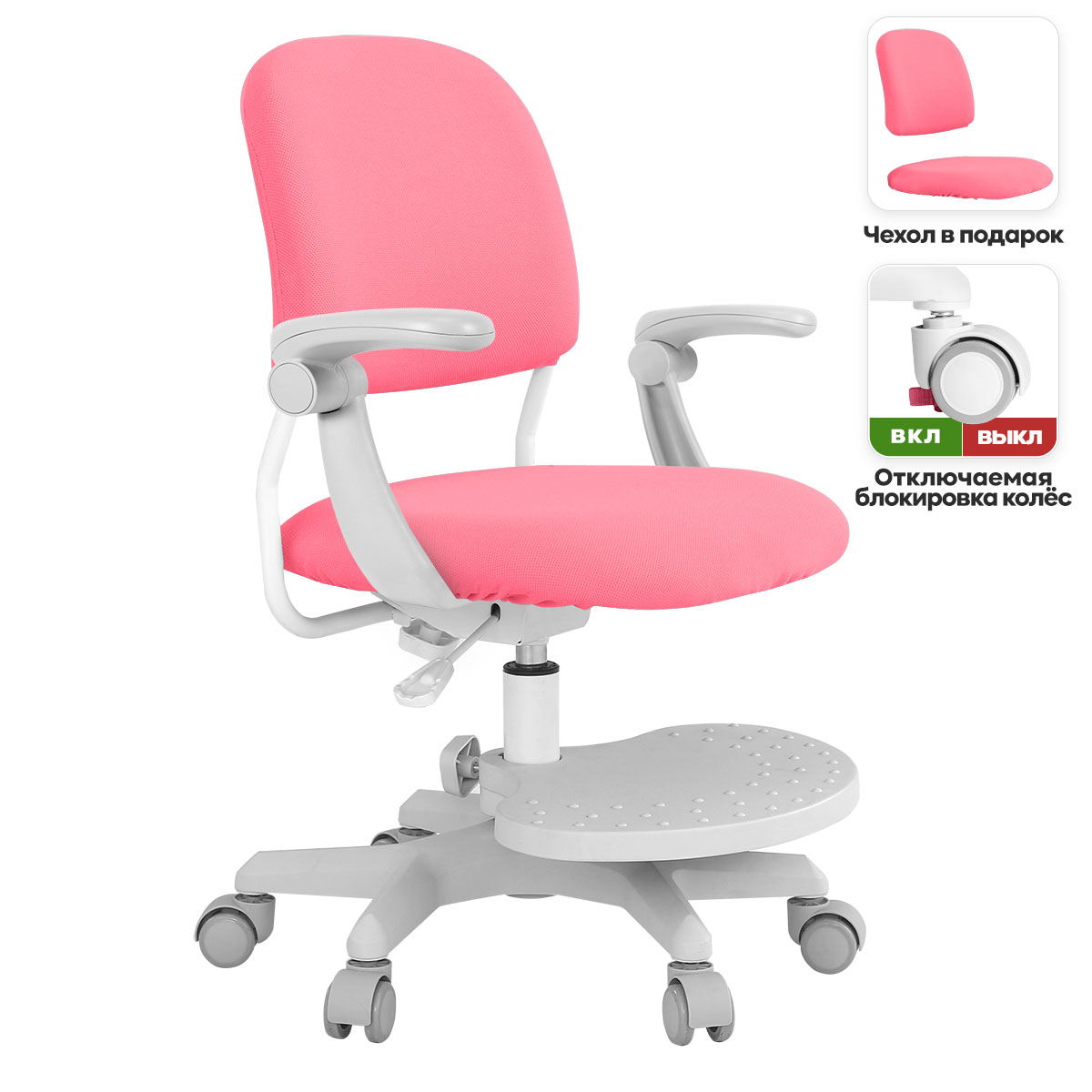 При покупке кресла вы получаете чехол в цвет кресла в подарок для защиты от повреждений или пятен. Также кресло полностью вращается вокруг своей оси, что помогает ребенку комфортно и без труда выйти из-за стола.